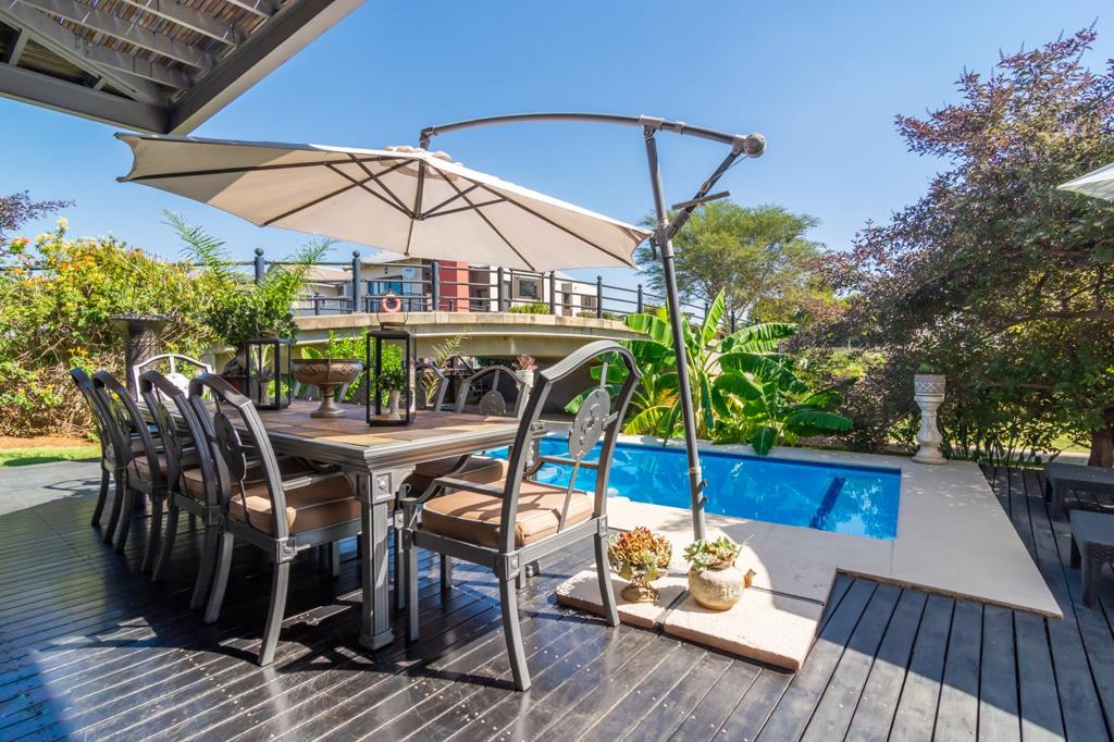 Situated on a coveted corner stand, this canal-front residence presents a picturesque setting with unparalleled views and luxurious amenities. Upon arrival, you''re greeted by a meticulously landscaped garden, setting the stage for the exquisite lifestyle that awaits within. Step beneath the charming bridge to discover an inviting entertainment nook, ideal for hosting gatherings or simply relaxing by the water''s edge. Inside, the home boasts spacious open-plan reception areas seamlessly integrated with a designer kitchen featuring top-of-the-line appliances and finishes. Embrace outdoor living on the patio overlooking the shimmering pool, complete with a convenient gas BBQ for effortless entertaining. Upstairs, a cozy pyjama lounge/study awaits, along with three generously sized bedrooms and three and a half well-appointed bathrooms (two en suite). Enjoy breathtaking views of the majestic Magaliesburg mountains from one of three balconies, offering the perfect retreat to unwind and soak in the surroundings. Additional amenities include a double garage for secure parking and storage, as well as extras like an inverter with four batteries for added convenience and sustainability. Experience the epitome of luxury waterfront living in this exceptional home situated within the Bay Bridge community of The Islands Estate.