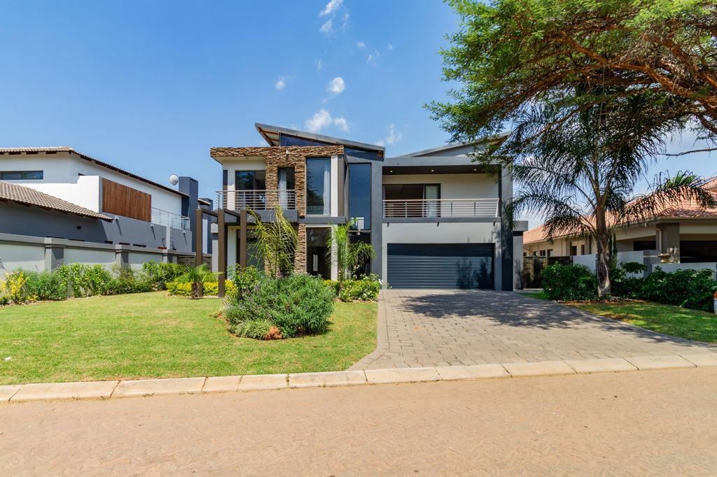 On the ground floor, a well-appointed en-suite bedroom offers direct access to the backyard, overlooking the tranquil canals. Upstairs, a cosy pyjama lounge is surrounded by three balconies, providing ample space to unwind. The main bedroom boasts a private balcony with breathtaking views of the canals and the majestic Magalies Mountains. A spacious walk-in dressing room leads to a luxurious en-suite bathroom, featuring a double basin and a double shower. The two additional en-suite bedrooms each open onto a private balcony, bathed in warm afternoon sunlight.