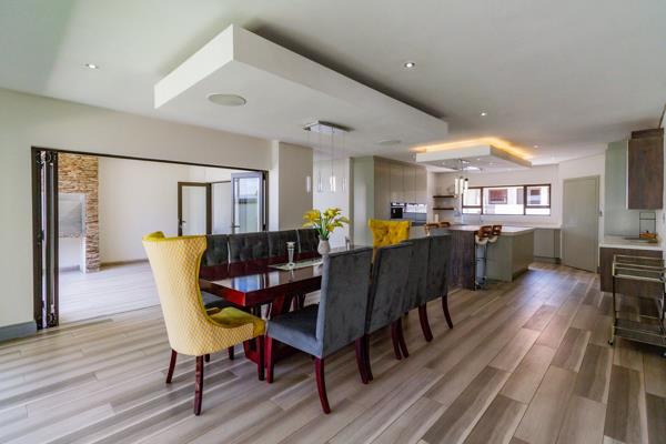 Modern Living with Breathtaking Views. This stunning home is designed for effortless open-plan living, with the dining area connecting the contemporary kitchen and an undercover braai area beside the swimming pool. The expansive entertainment space consists of two versatile open-plan sections, featuring sliding and stack doors that create a seamless transition to the spacious outdoor area. Gather around the Boma fire on chilly winter evenings or enjoy a leisurely boat cruise on warm summer days.