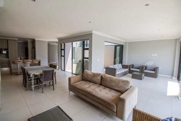Designed for effortless living and entertaining, the open-plan layout flows from the stylish living areas to a spacious balcony, where you can take in the majestic Magalies Mountains and tranquil water canals. The homes airy design ensures abundant natural light, creating a warm and inviting atmosphere. A private courtyard provides a safe play area for children, while the balcony is perfect for relaxed braais with family and friends.