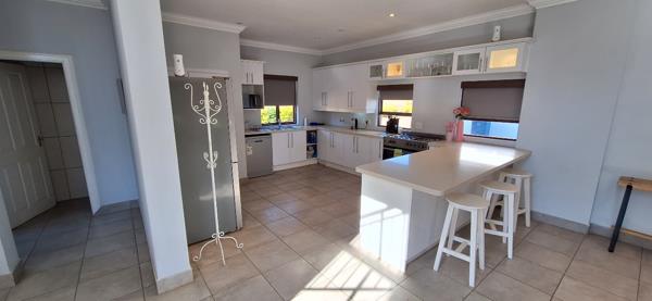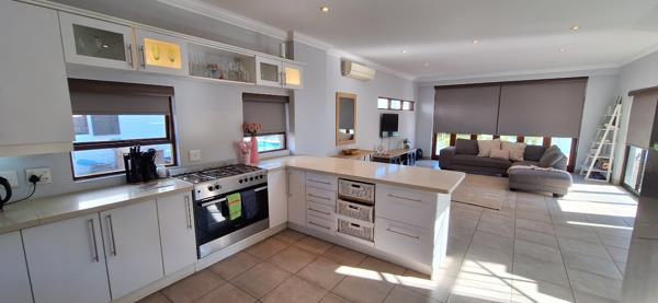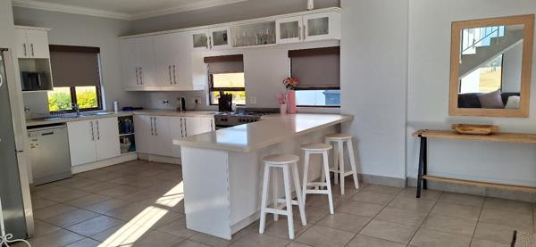 oOpen-plan living, dining flowing out to the wooden deck with built-in braai completed with a sparkling pool, spectacular for summer or winter evenings with family and friends, the choice is yours. The state-of-the-art kitchen fitted with a gas stove and oven for the culinary experts or even inexperienced chefs where you can practice your skills out of the way but still part of the family or guests.