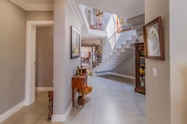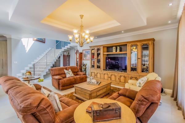 A big pyjama lounge, hobby room and sparkling pool add to the versatility and leisure options. The sunken seating area with built-in braai on the outdoor deck creates the perfect setting for hosting memorable gatherings or enjoying a sundowner at the end of a hard day.