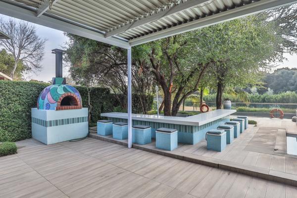 The entertainment area includes a pizza oven, Boma (fire pit) Pool (with automated cover)Built-in Bar (with integrated fridge and ice maker) Built-in Gas braai (grill)