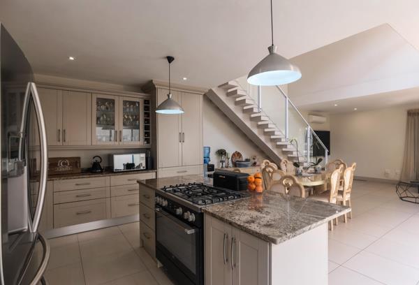 Welcome to this exquisite modern retreat at The Islands Estate, Hartbeespoort. A private side entrance leads you into expansive open-plan living areas, graced with double-volume ceilings that evoke a profound sense of openness and sophistication. Adjacent to the living spaces, a generous courtyard with sliding door access beckons. This outdoor oasis features artificial grass and a covered braai area, ideal for entertaining loved ones while soaking in the breathtaking views of the canals and majestic Magalies Mountains.
