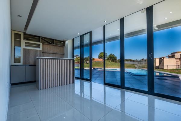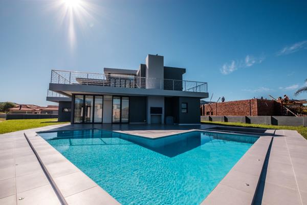 Located at the end of Harbour Drive, this architectural gem welcomes you with an opulent entrance and an open plan garage that can accommodate four luxurious vehicles. The entrance hall with a custom-made staircase and a guest toilet sets the tone for the rest of the home. As you move further inside, you are greeted by an open plan kitchen, lounge, TV corner, and dining area that are outfitted with the latest modern finishes and gadgets. The dining area seamlessly transitions into a luxurious bar area that opens up to the outdoor braai area, swimming pool, and boma, creating an entertainer''s dream space. These outdoor areas are designed for comfort and relaxation, making them perfect for hosting gatherings or simply unwinding after a long day.