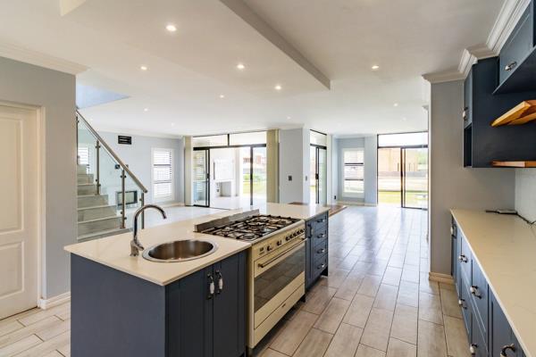 Be captivated as you step inside and be greeted by expansive open living spaces featuring a cosy fireplace. The modern kitchen is a highlight of this area, complemented by a separate scullery for added convenience. Sliding doors open to an undercover patio with a built-in braai, offering picturesque views of the canals and Magalies Mountains. Bask in the sun year-round, as this home is perfectly positioned, making it an entertainer''s dream.