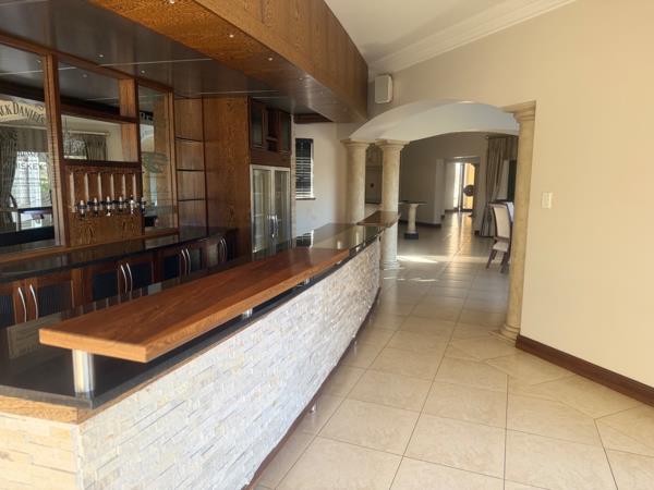 This 4 bedroom home is superb, with all the boxes ticked. Open plan vast downstairs entertainment areas include a fitted 5 star bar, massive country kitchen fit for a gourmet chef, huge scullery, dining room, one formal lounge and one closed in patio lounge with braai. A spacious fitted office and walk in safe are downstairs with the guest bedroom en suite.