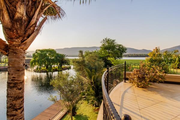 Timeless Home on the Dam with Mountain Views. This stunning property is located on the shores of Hartbeespoort Dam, with private launching facilities, staff accommodation and a breathtaking entertainment area.