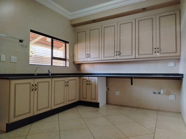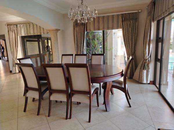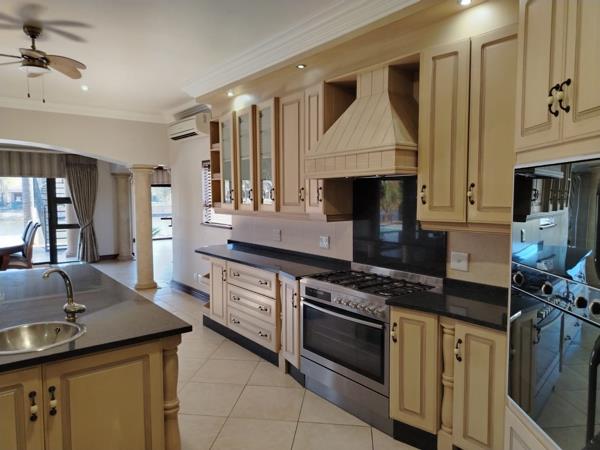 Inside, youll find two large living areasone for formal gatherings and another for relaxed loungingboth opening out onto patios where you can enjoy the view by built-in gas fireplaces. The designer kitchen, complete with a breakfast nook, scullery, and granite countertops, flows effortlessly into the dining space that opens onto the entertainment patio. Here, youll find a pool, dam facilities, and a cozy entertainment area featuring a charming rustic bar made from Patrys hout.