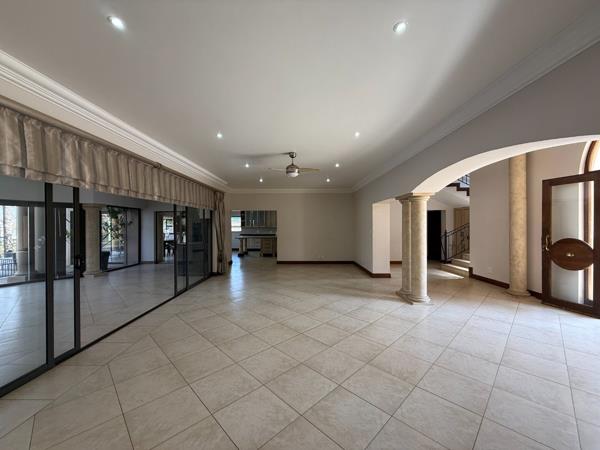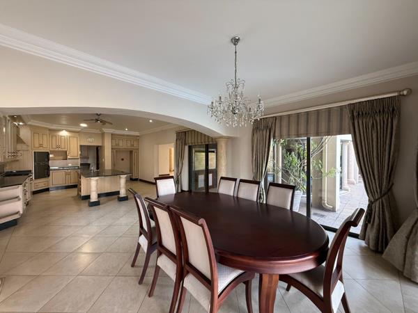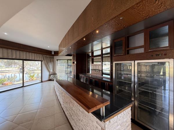 Step inside to discover vast open-plan entertainment areas, featuring a sophisticated 5-star bar, a country-style gourmet kitchen with an expansive scullery, a formal dining room, a refined formal lounge, and an enclosed patio lounge with a built-in braai. A spacious fitted office and secure walk-in safe complement the downstairs layout, along with a beautifully appointed guest suite.
