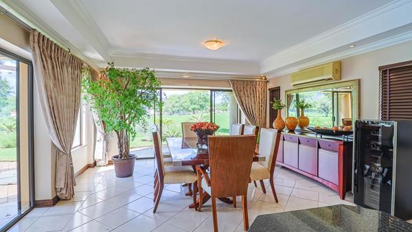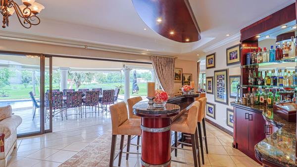 Open plan, Techni-painted, granite kitchen with separate scullery, gas hob and double oven. 3 Fridge freezers, wine cooler. Nook with prep- bowl. Dining room with 10 seater dining table and direct access to the garden and also the enormous covered entertainment patio with awnings. Aquamarine swimming pool with water feature.