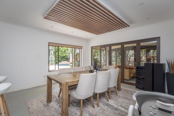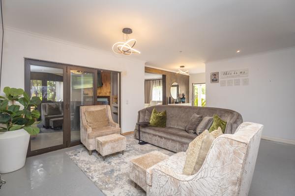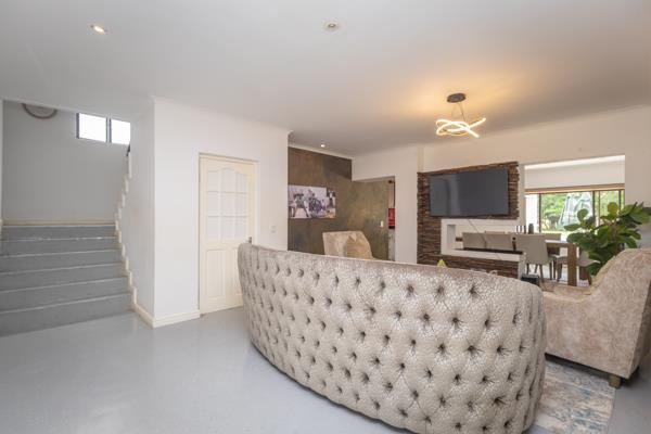 On the main level, a spacious and comfortable bedroom suits guests or serves as a master suite, while two generously sized lounges provide ideal spaces for relaxation and family gatherings, bathed in natural light from large windows. A covered patio enhances outdoor entertaining with seamless indoor-outdoor flow, complemented by a modern, well-equipped kitchen boasting ample counter space and storage for culinary enthusiasts, alongside a stylish dining room perfect for family meals and hosting guests.
