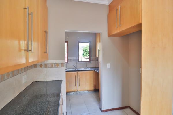 This charming duplex townhouse is located in the highly desirable Xanadu Nature Estate, an eco-friendly community where wildlife roams freely. Featuring three spacious bedrooms, including a main suite with a luxurious en-suite bathroom, this home combines comfort and practicality. The well-appointed kitchen is complemented by a separate scullery, and the property includes two additional bathrooms and a guest toilet.