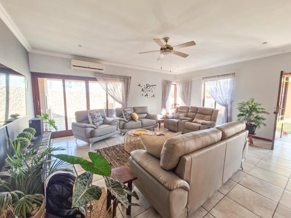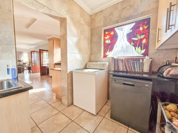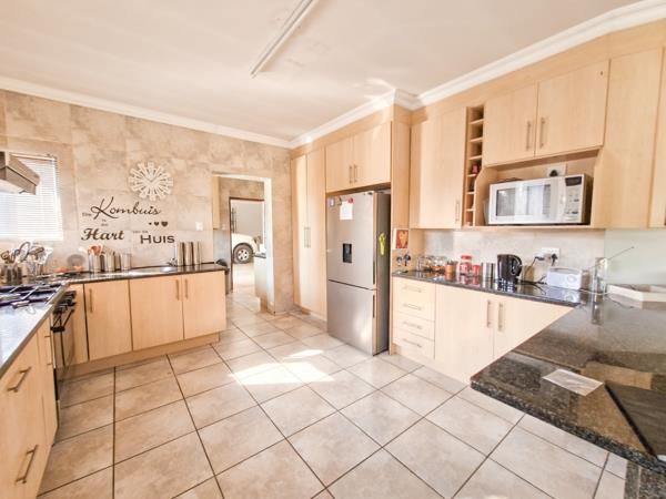 The heart of the home is a sleek open-plan kitchen fitted with granite countertops, ample built-in cupboards, and a separate scullery. It flows effortlessly into expansive living and dining areas that open onto a covered patio with a built-in braai and mdashperfect for year-round entertaining.