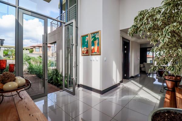 On the middle level, the double-volume entrance hall welcomes you to this masterpiece. The study is on this level and the three reception rooms open to a deck with a jacuzzi and sparkling pool with majestic views over the Hartbeespoort Dam. This whole level is built around a central atrium-like heart of the house - fully framed by glass sliding doors. The guest room-en-suite allows guests to be apart from the rest of the household.