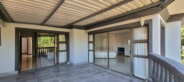 The covered patio leads to a sparkling pool and a newly built pool house perfect for hosting, complete with a built-in braai, guest loo, and space for game days or relaxed weekends.