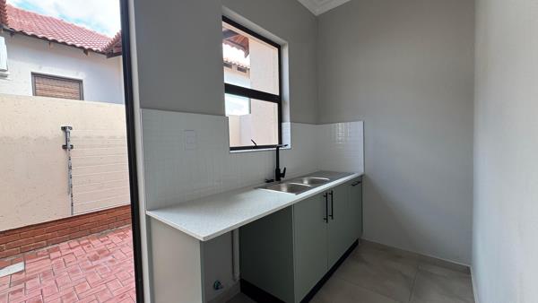 Step into this pristine, modern 2-bedroom, 2-bathroom home that feels brand new and is ready for you to move in. Designed with high-quality finishes, this property offers spacious bedrooms and an open-plan living area that seamlessly connects to a stunning kitchen. The kitchen features a pantry for extra storage and a scullery equipped for your appliances. A double garage with built-in cupboards ensures additional storage space for your convenience.