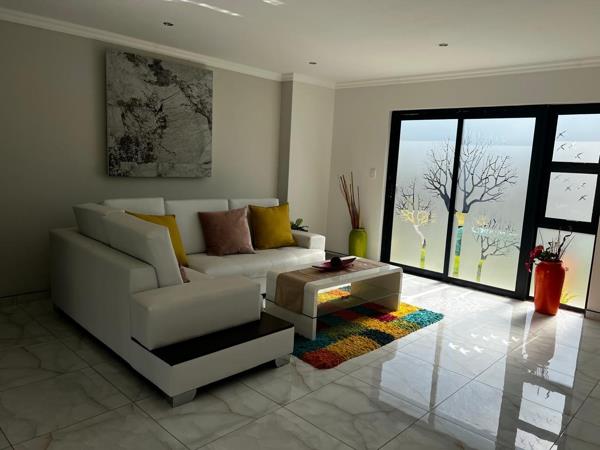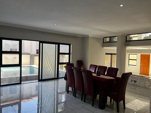This home offers five generous bedrooms, all en-suite. Four of the bedrooms are located upstairs, including a luxurious master suite with a private dressing area and abundant cupboard space. Downstairs features a fifth well-appointed en-suite bedroom ideal for guests. Upstairs also includes a spacious family lounge and an additional flexible-use area, ideal for a home office, pyjama lounge, or second TV room.