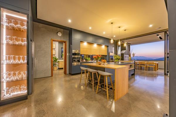 On the middle floor, you''ll find the heart of the home: a modern open-plan kitchen with a central island and gas stove, overlooking a spacious dining area. A separate scullery and walk-in pantry ensure functionality without compromising on style. Large stacking doors connect the dining and kitchen space to a covered outdoor braai area perfect for effortless entertaining, all while enjoying the stunning views.