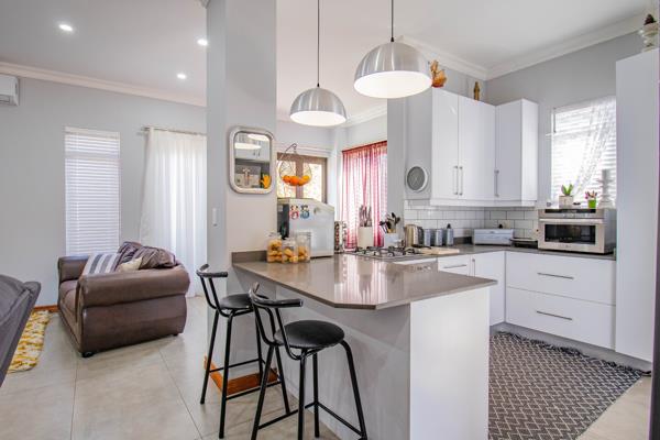 The open-plan kitchen, dining, and lounge area creates a warm and inviting space, perfect for entertaining or relaxing. The kitchen boasts a brand-new gas stove and sleek finishes, while the enclosed patio opens to a serene and manicured garden.