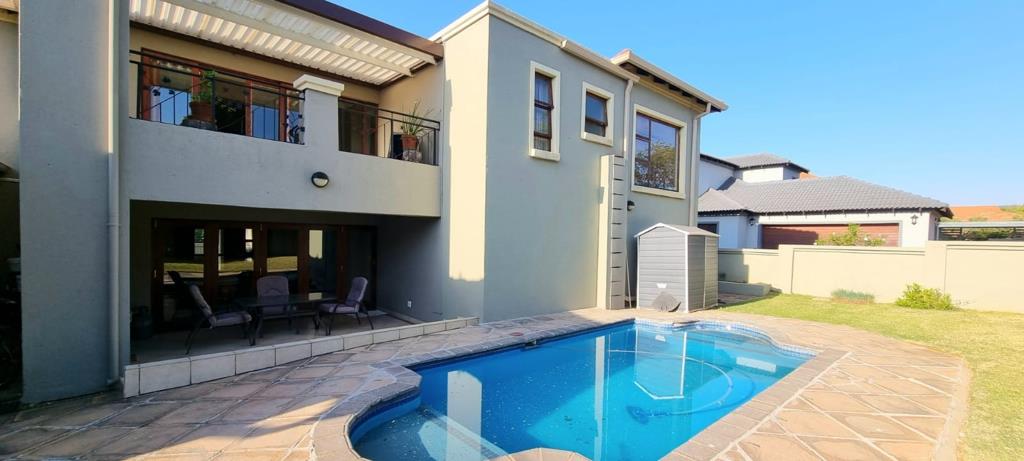 Step into elegance and comfort at this magnificent 5-bedroom residence in the prestigious Xanadu Eco Park in Hartbeespoort. Designed to cater to both grand entertaining and tranquil family living, this expansive property (570 m) sits on a generous 900 m stand and offers every amenity you could desire. Five well-appointed bedrooms, including luxurious main suite with walk-in closet and balcony, plus 4.5 beautifully finished bathrooms. Versatile Living with four reception rooms including formal lounge, dining area, cozy family living room and study/office.
