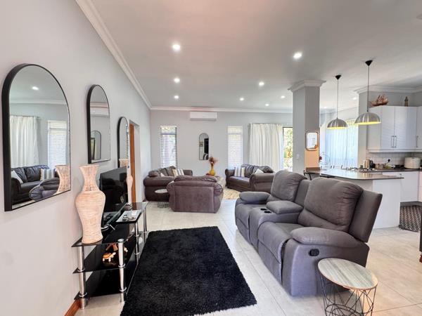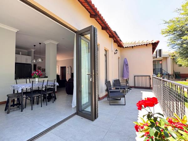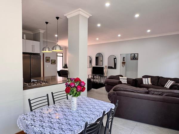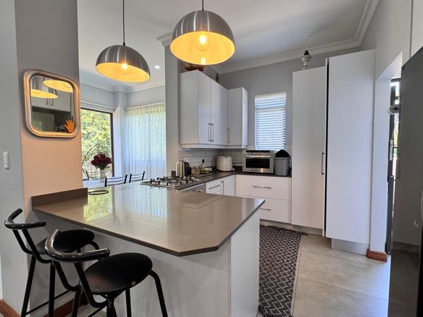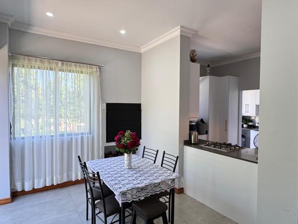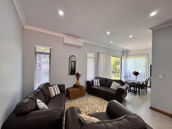 Enjoy year-round comfort and energy efficiency with inverter air conditioners, a solar geyser, and backup water supply. The living areas open through sliding doors onto a lovely patio overlooking the tranquil communal garden, the perfect spot to unwind or enjoy a morning coffee.