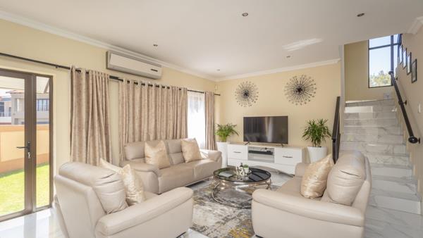 The open plan living and dining areas create a seamless flow enhanced by modern finishes and air conditioning for year round convenience. Ideal for entertaining the home includes a built in braai a balcony and a private fully walled garden perfect for children and pets to enjoy in safety.