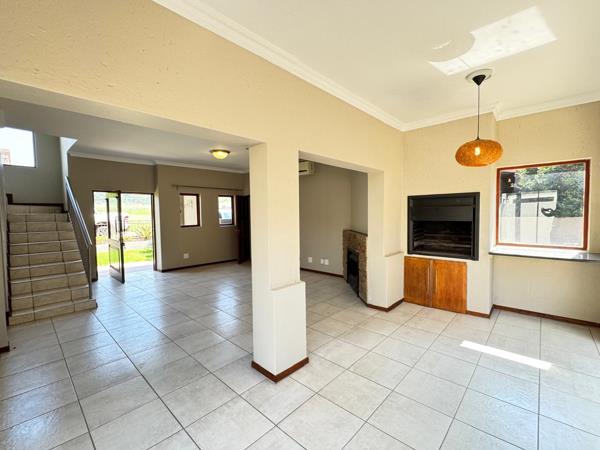 The ground floor welcomes you with a spacious open-plan living area that flows effortlessly into an indoor braai room. Sliding doors open to a neatly paved backyard, creating a perfect space for relaxed entertaining.