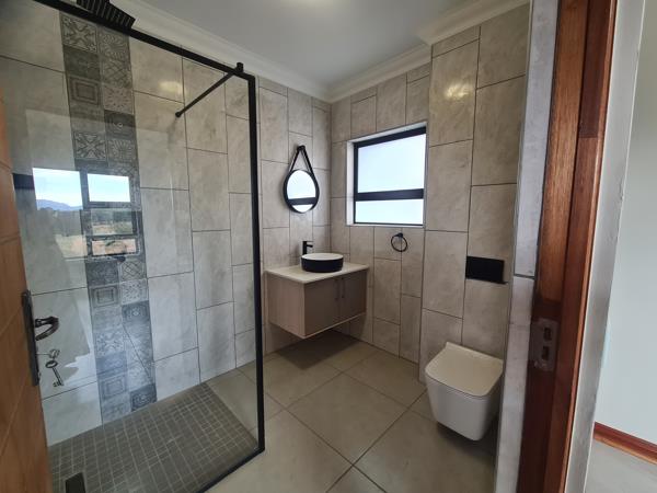 Upon entering, youre welcomed by an expansive open-plan design that seamlessly integrates the kitchen, dining, and lounge areas. The gourmet kitchen, both beautiful and practical, features a top-quality free-standing gas stove, ample counter space, and stylish cabinetry, making it the heart of the home. The indoor living areas extend effortlessly onto a large covered patio with a built-in braai, perfect for outdoor dining or unwinding in the peaceful ambiance of the estate.