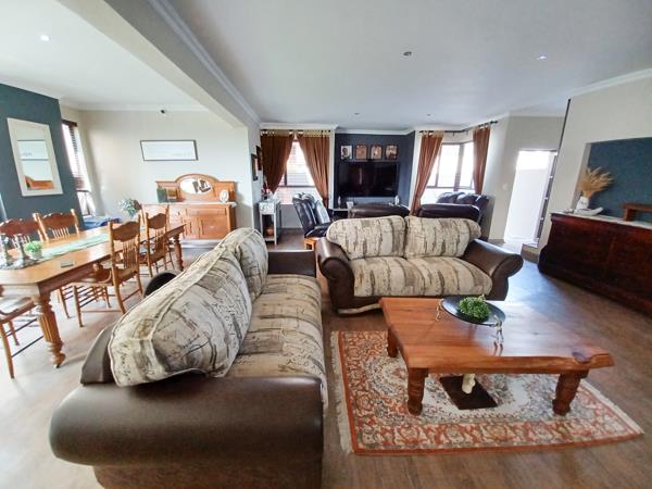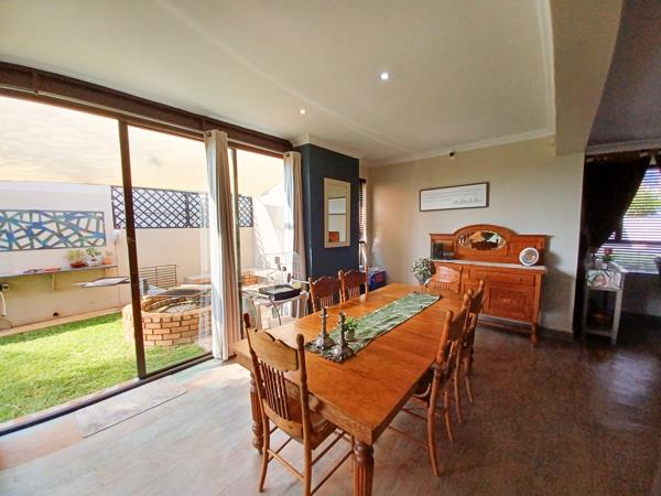 The open-plan kitchen and dining area seamlessly flow onto a spacious boma, perfect for hosting family braais and entertaining under the stars. Upstairs, the main bedroom features a private en-suite bathroom, providing a peaceful retreat.