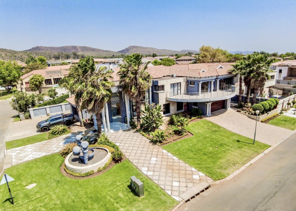 This property also includes fully equipped domestic quarters and offers ample parking with four garages. Residents benefit from an array of amenities within the estate, such as a private school, tennis courts, walking trails, bird hides, and a secure environment with 24-hour security patrols, making it a safe haven for families.