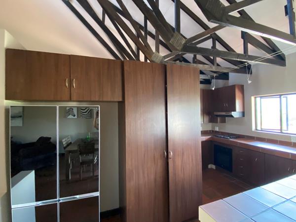 Upstairs, an open-plan layout invites you into a stylish living area adjoining the kitchen. Slide open the doors to your private patio and enjoy the scenic views of the valley below a daily spectacle that never gets old.The outdoor experience continues with a built-in braai on the patio, extending your living space and providing a perfect setting for gatherings.