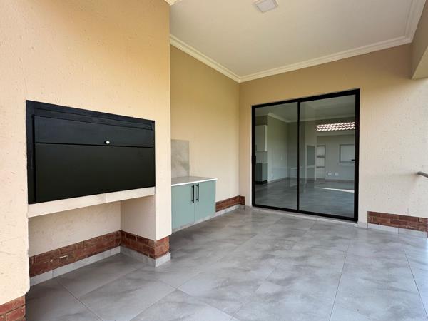 This inviting layout creates the ideal environment for entertaining family and friends. Large sliding doors open onto an undercover patio with a built-in braai, allowing you to enjoy the estates peaceful atmosphere from the comfort of your own home.