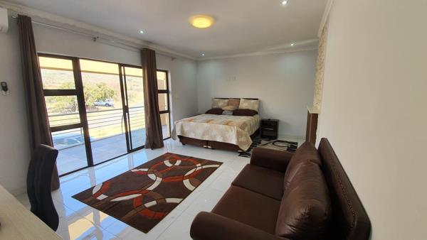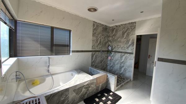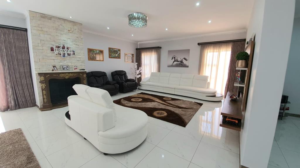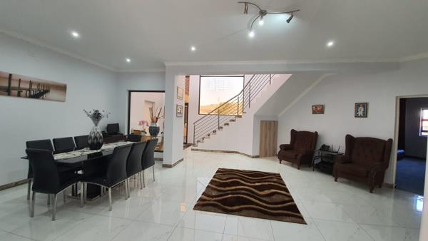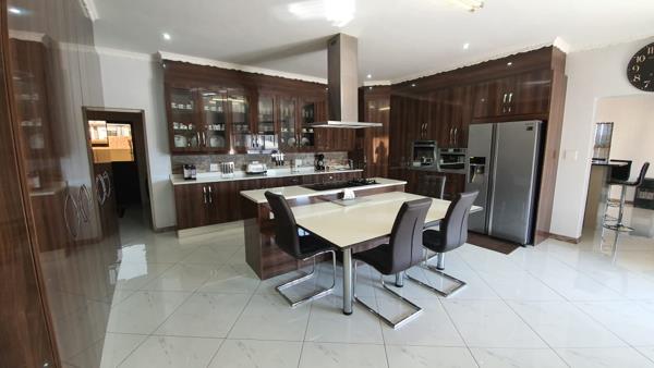 This very spacious home, with high-gloss tiled floors has stunning finishes, lots of extras and the furniture is included in the price. The entertainment areas include a large theatre room with an air conditioner and a separate built-in bar which opens to a patio with a built-in braai, overlooking the big garden and swimming pool.