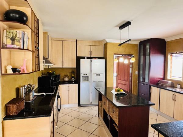 This beautifully designed property offers expansive open-plan living areas that flow effortlessly into a modern kitchen, complete with a separate scullery for added convenience. A double-sided gas fireplace between the lounge and dining room adds warmth and elegance, creating the perfect atmosphere for family gatherings or entertaining guests.