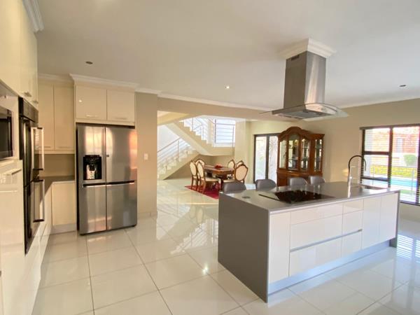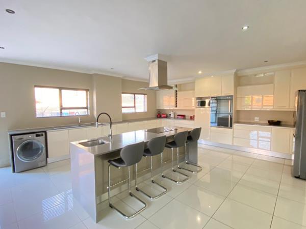 This modern home will impress you with spacious living areas adjacent to a beautiful kitchen that is perfect for cooking up a storm. Sliding doors exit onto the undercover patio with built-in braai from where you have access to the garden and sparkling pool.