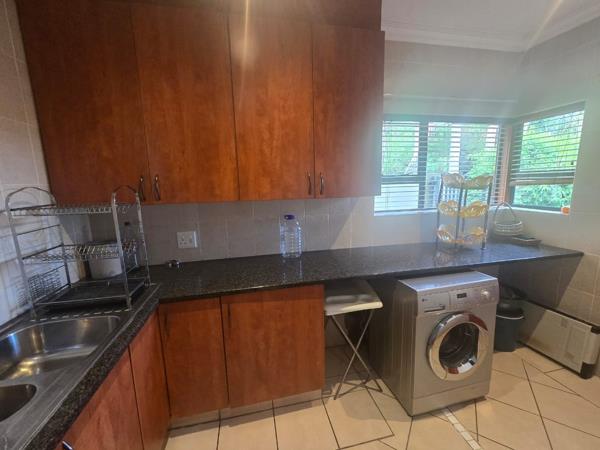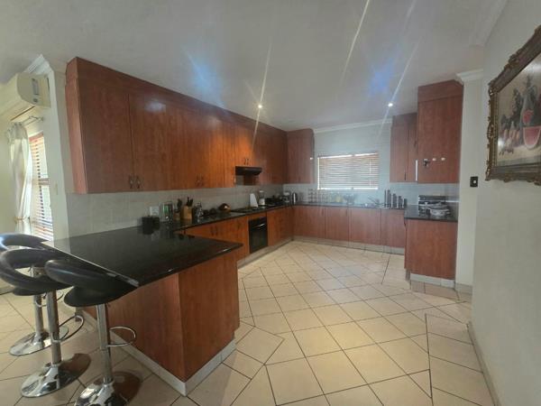 The property welcomes you with open-plan living and dining areas that flow effortlessly, creating a warm atmosphere. A separate lounge offers a peaceful space for relaxation or hosting guests. The kitchen features ample cupboards and a separate scullery, designed for ease and functionality.