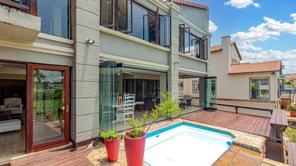 Outside, the property offers a double jetty with direct dam access, making it a dream for boating enthusiasts. A lovely splash pool to soak in, ideal for warmer days. From your main bedroom, you can enjoy sweeping views of the communal pool and watch your children enjoy the secure community area below.
