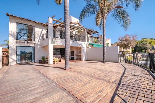 Situated right on the waters edge with spectacular views, this immaculate 3-bedroom duplex offers a truly unique lifestyle. Enjoy a vast wrap-around deck perfect for entertaining, a private jetty with an additional boat for water sport enthusiasts, and an exceptional entertainment area featuring an indoor braai, built-in wooden bar, and sliding doors flowing into the open-plan lounge, dining, and kitchen with wooden cupboards and a breakfast table. A single garage and covered parking lead directly into the kitchen, with a convenient guest toilet downstairs.