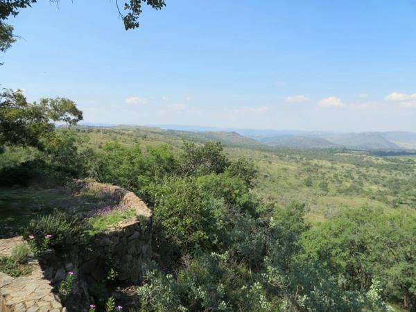 Huge family home on small holding, with great potential to change into a Lodge!!. The house is located on top of a koppie and commands 360-degree views of the Magaliesberg Mountain Range, as well as the entire Johannesburg and Pretoria skylines. The garden has been carefully nurtured, with hand-paved paths leading to two garden terraces which have views over the adjoining game farm. The entire area of the house is approximately 800 m2 and is served by a pressurised borehole and Eskom for power. An emergency reserve water tank is located in the house. Security in the area is good, as it can only be accessed by private road, and the access boom, is guarded 247. There is also an active security committee with a radio system, scramblers, and security cameras monitoring the roads and paths.
