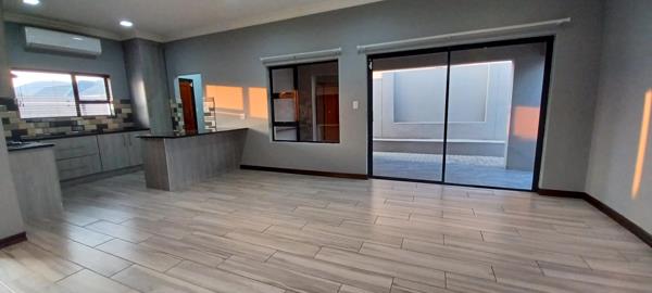 The home features an open-plan kitchen that flows seamlessly into the sitting room, creating a warm and inviting living space. A built-in braai adds to the appeal, perfect for entertaining family and friends all year round.