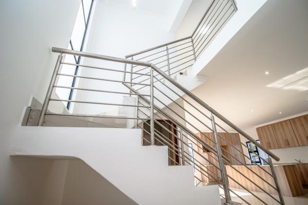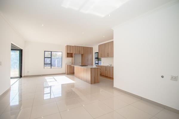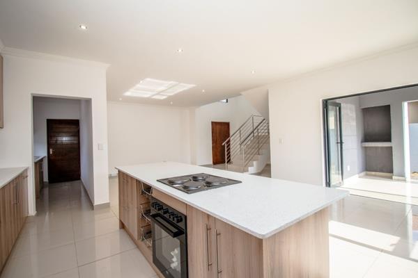 The heart of the home is a sleek, open-plan lounge and dining area, perfect for both relaxed family evenings and entertaining guests. The kitchen is a chefs dream with Caesarstone countertops and an adjoining scullery, cleverly designed to accommodate all your appliances while keeping the space clutter-free.