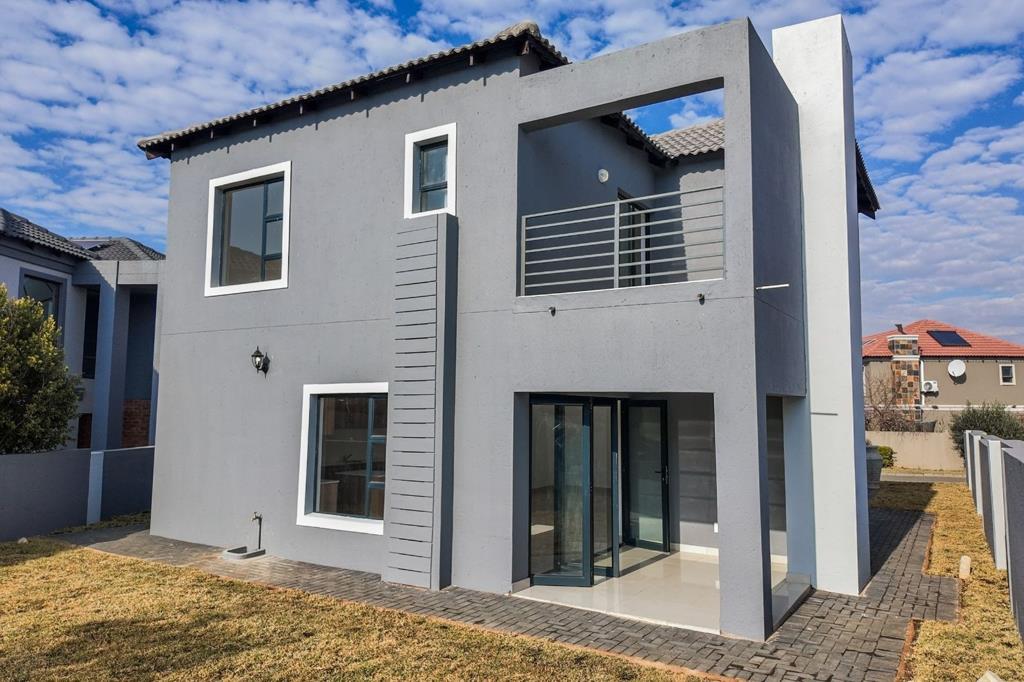 Outside, entertaining is effortless. A covered patio with a built-in braai opens to a versatile garden, ideal for a pool, boma, or outdoor play area. Additional features include a guest toilet and a double automated garage.