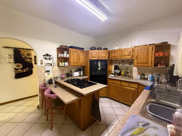 The home features a well-established garden, supported by a borehole to keep everything lush and green throughout the year. Inside, multiple spacious living areas provide flexibility for a lounge, TV room, or entertainment space, all flowing seamlessly from the kitchen. A practical serving hatch makes hosting and everyday living effortless.