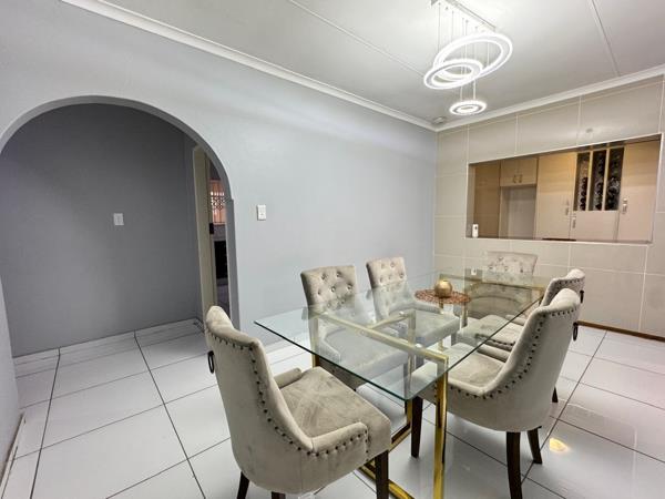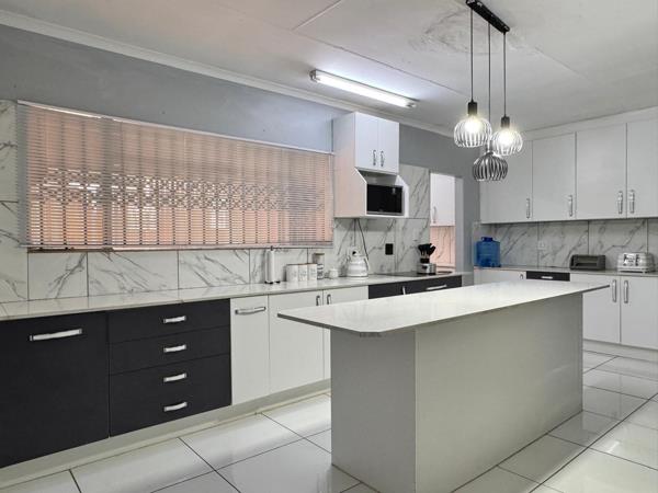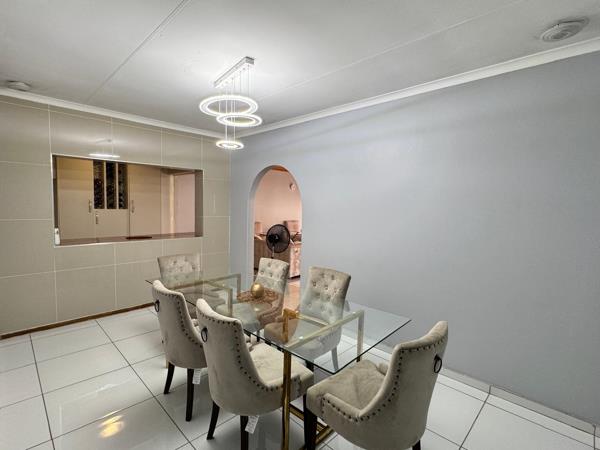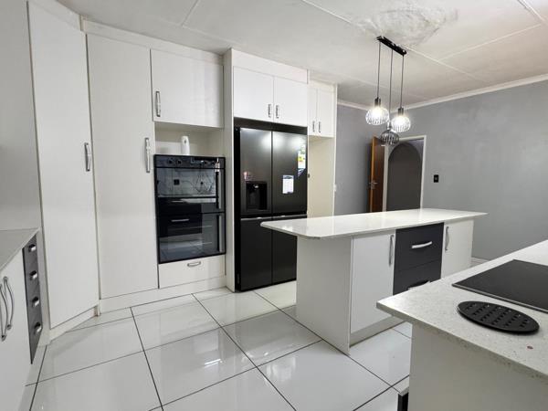 The separate kitchen is conveniently positioned next to the dining area and offers ample cupboard space, complemented by a separate scullery that keeps the main kitchen neat and functional.