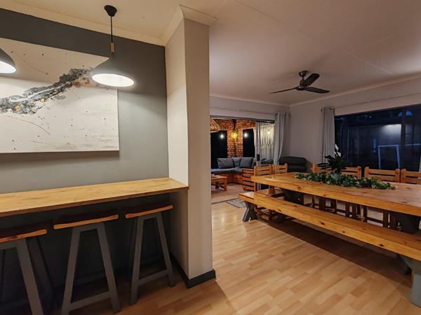 Outdoor features truly set this property apart. The stunning landscaped garden offers a tranquil escape, complete with a large kids jungle gym for endless fun. A Wendy house provides additional storage space, and a borehole ensures reliable water supply for garden maintenance.