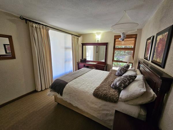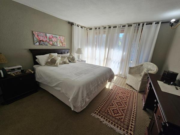 Featuring 4 bedrooms 3 with garden or courtyard access, 2 bathrooms, and double-volume ceilings for a spacious feel. The private courtyard includes a splash pool, built-in braai, and direct garage access, with extra parking for 34 vehicles.