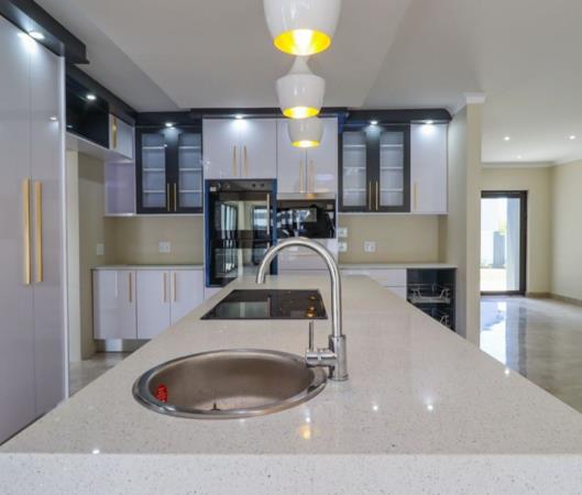 The sleek kitchen flows effortlessly into the dining and lounge areas, opening out to a spacious patio and landscaped garden ideal for weekend braais, relaxing with family, or hosting unforgettable get-togethers.