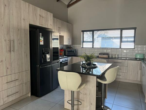 This light and airy home features a generous open plan living space which allows one to easily create both a lounge and a separate dining area and the high ceilings throughout the home further add to the feeling of spaciousness. The open plan kitchen flows out to the living area. The laundry area in the garage is set up to accommodate both a washing machine and a tumble dryer that leads out to a small enclosed courtyard. Leading off the living areas is the covered patio with built in braai where one can enjoy the private fully walled garden. The home offers three bedrooms and two bathroom, with the main en-suite. Garage has direct access to the home. Leloko Lifestyle Estate is centrally located allowing easy access to the N4 Platinum highway to Rustenburg, Pretoria and Johannesburg. A lifestyle estate with generous green belts making it ideal for those who enjoy early morning strolls, one can picnic on the banks of the pristine waterfront area, enjoy the communal pool, braai area.