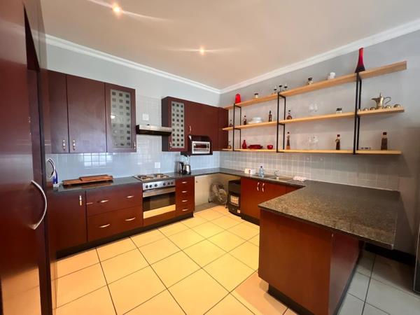 This spacious 3-bedroom, 2-bathroom apartment is nestled in a secure and tranquil equestrian estate, offering both comfort and convenience. The open-plan layout seamlessly combines a large kitchen, lounge, and dining room, creating a modern and airy living space perfect for both entertaining and relaxation. The kitchen is well-equipped, providing ample counter space and storage, making meal preparation a breeze. The lounge and dining areas flow effortlessly, ideal for family gatherings or hosting friends.